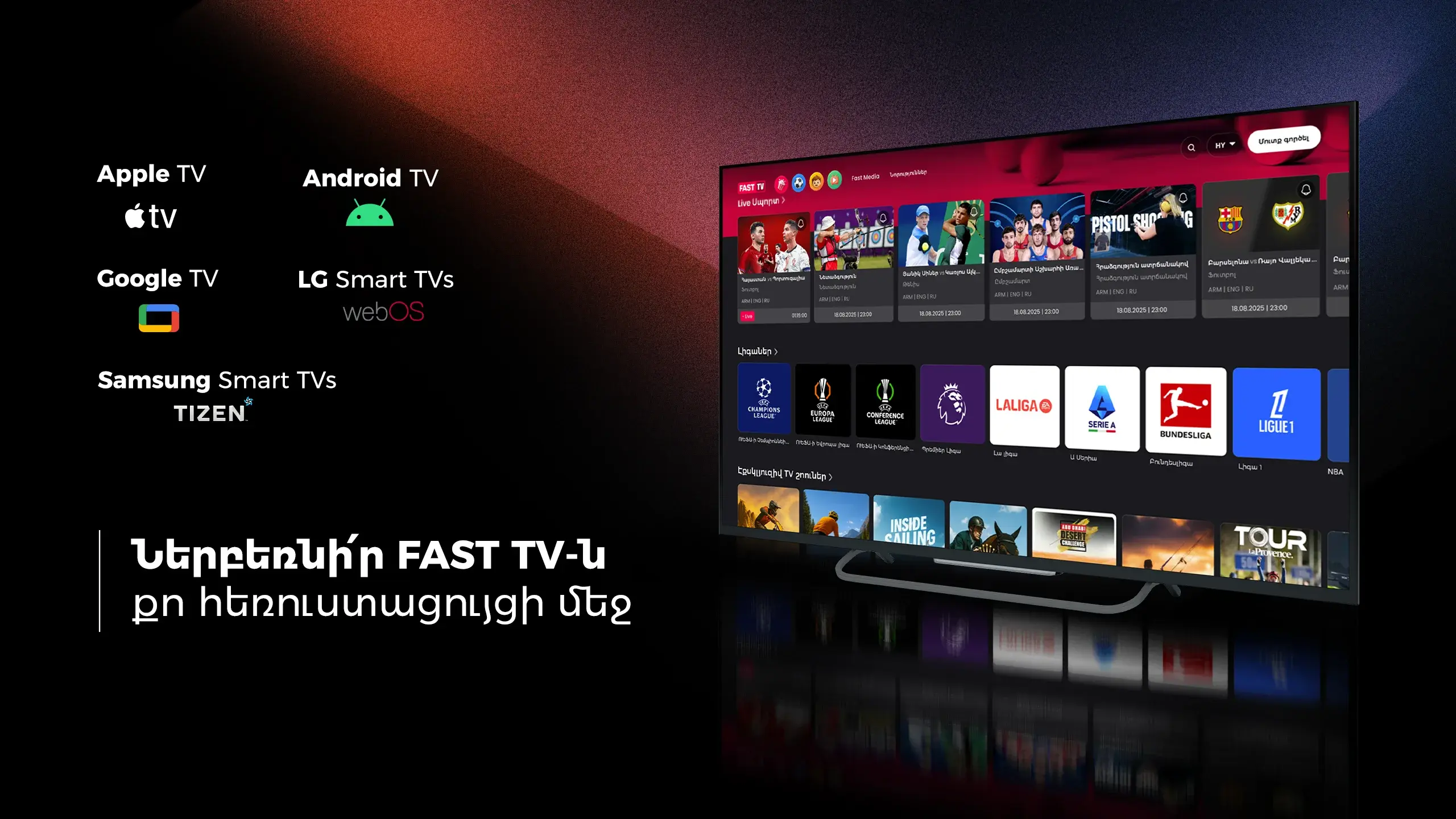 Fast TV-ն հոսքային հեռարձակման սպորտային և գեղարվեստական հարթակ է, որը հասանելի է դարձնում տեղական ու միջազգային սպորտային իրադարձությունների ուղիղ հեռարձակումները: Այն հնարավորություն է տալիս վայելելու հայկական առաջին սպորտային հեռուստաալիքները, ինչպես նաև դիտելու հեղինակային հաղորդումներ, տեղական ու միջազգային, անիմացիոն ֆիլմեր, սպորտային վավերագրական սերիալներ, հեռուստաշոուներ և ավելին:
